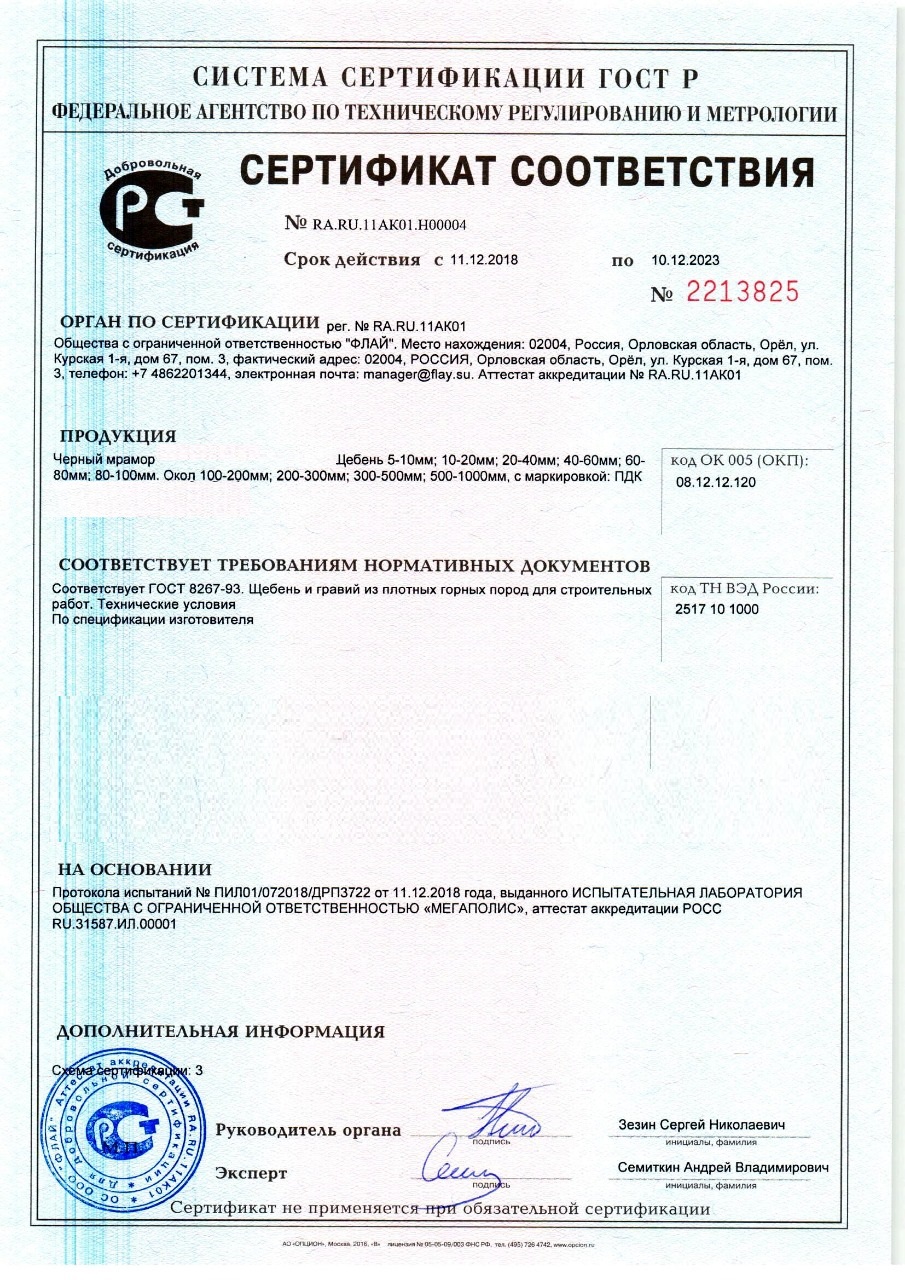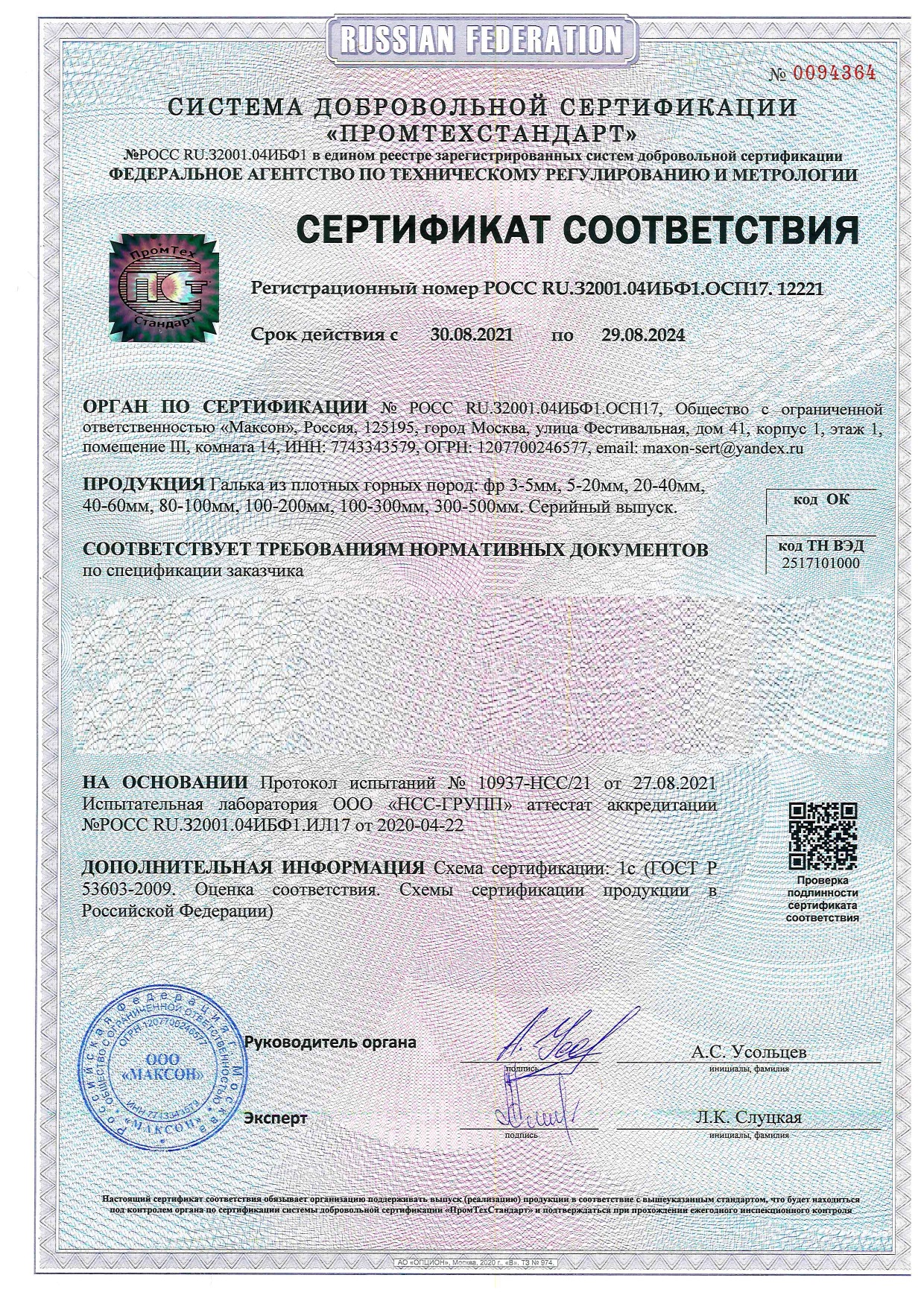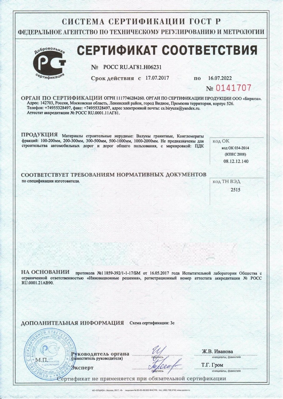 Сертификат соответствия на гальку, бут, булыгу в Улан-Уде