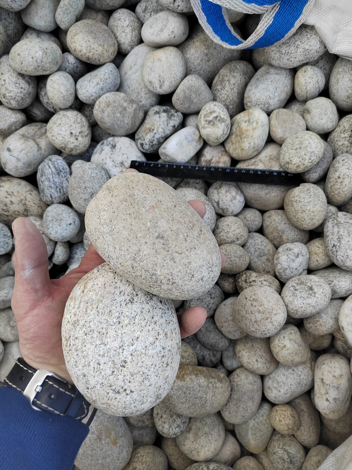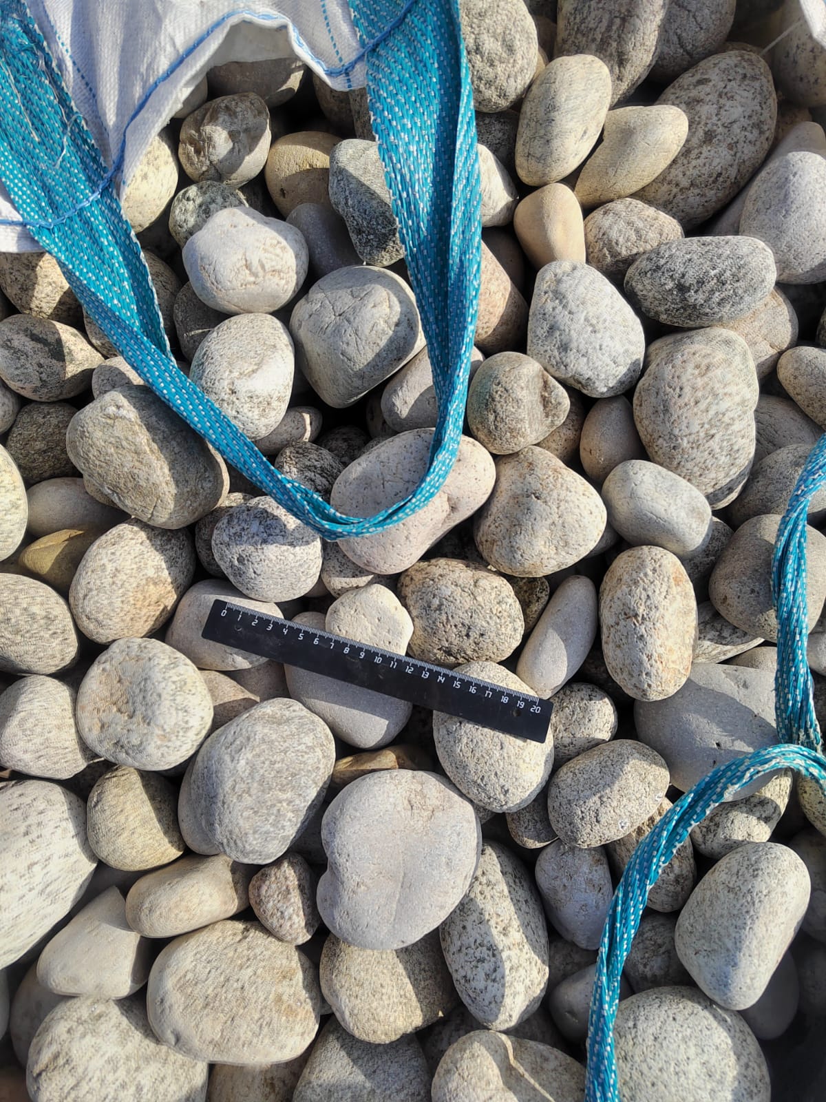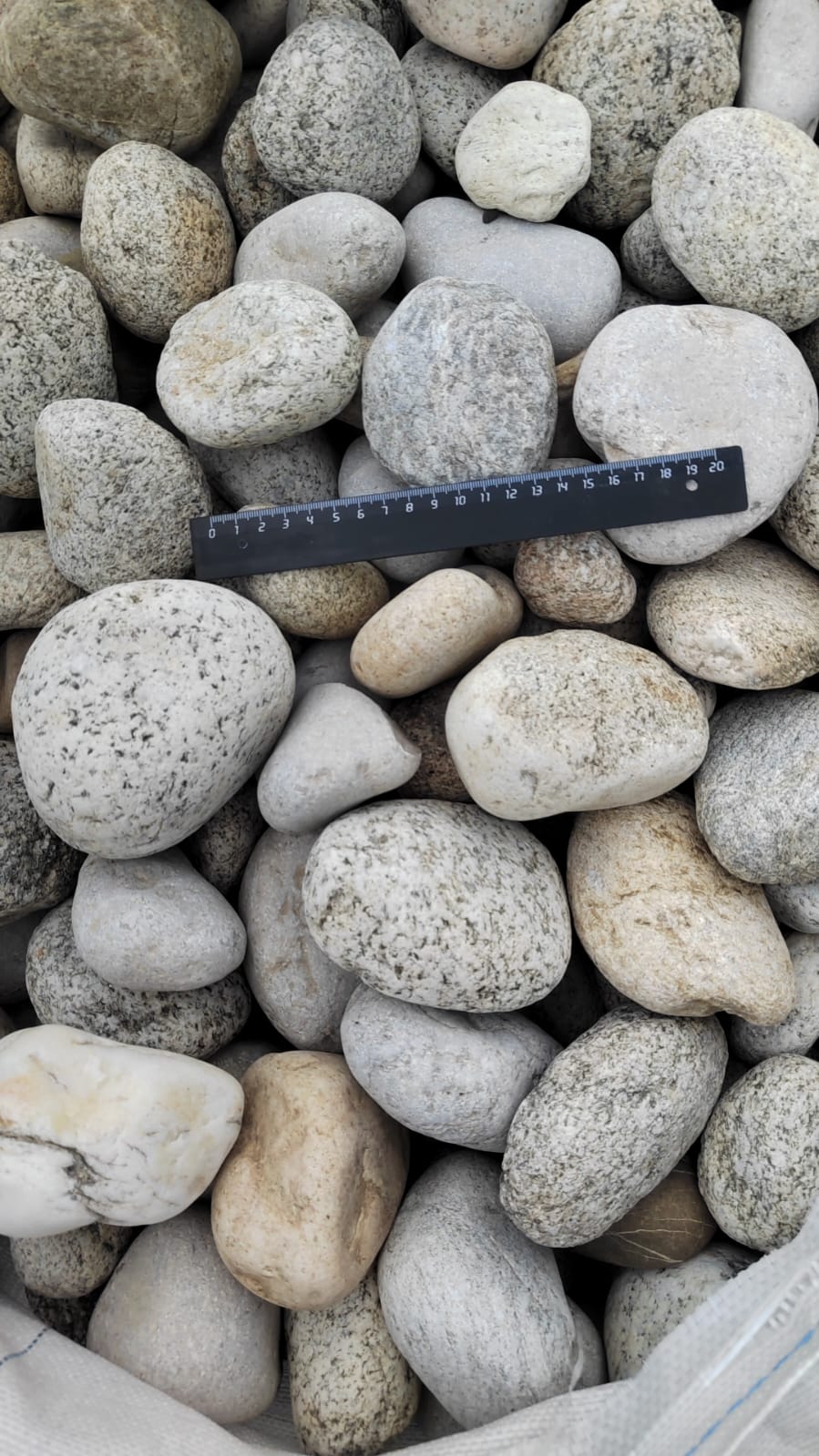 Галька горная речная окатанная (серо-белая, "страусиные яйца")