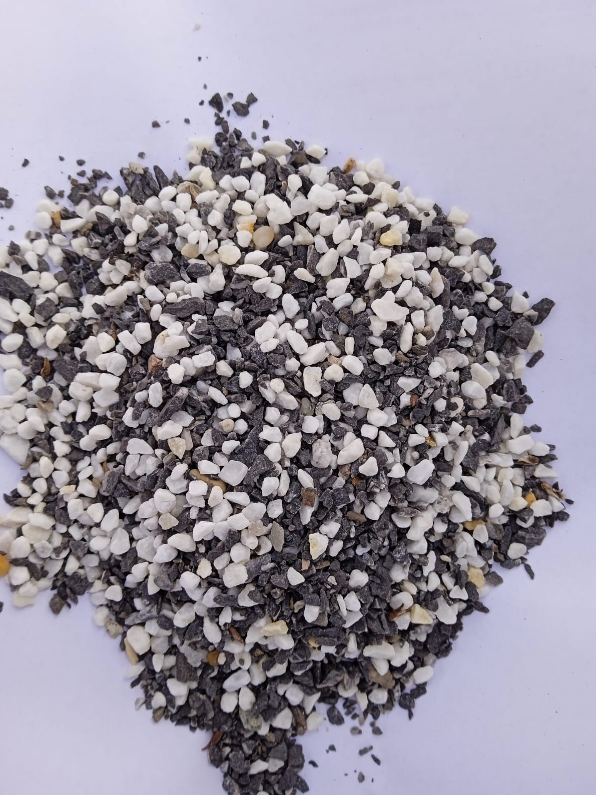 Мраморная крошка (щебень галтованный микс:белый-черный-розовый-медовый) фр.5-10 мм.