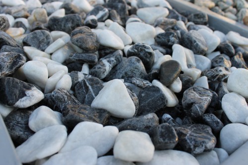 • Kamenclub.ru: Мраморная крошка (щебень галтованный микс:: белый-черный) фр.20-40 мм  купить в Улан-Уде мрамор белый, черный мраморный галтованный щебень 15500 руб/т   фото КАМЕНЬ КЛУБ