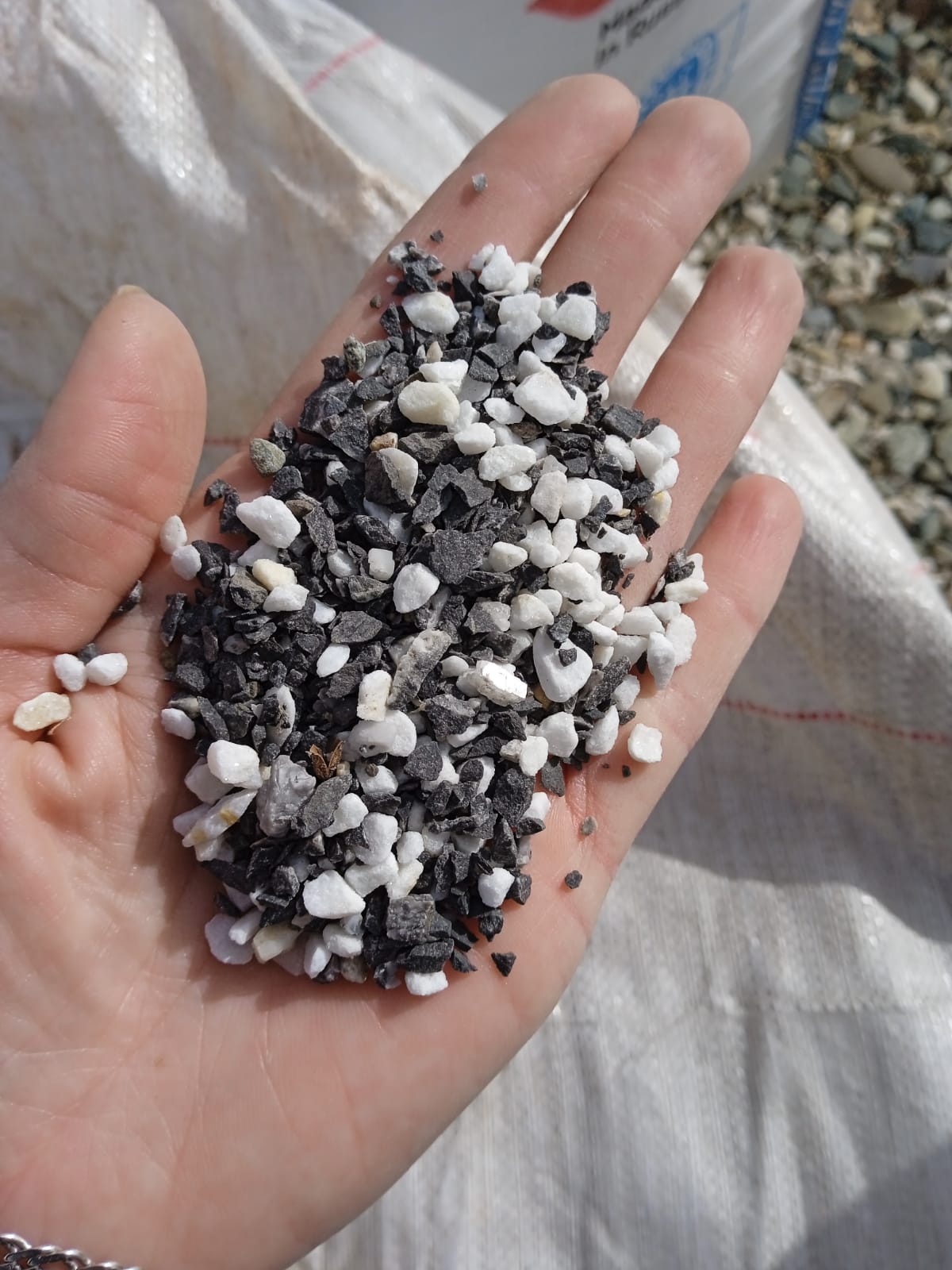 Мраморная крошка (щебень крошка микс : белый-черный-розовый) фр. 3-5 мм.