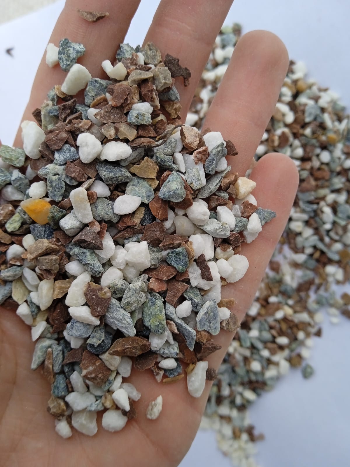 • Мраморная крошка (щебень крошка микс : белый-черный-розовый) фр. 5-10 мм.