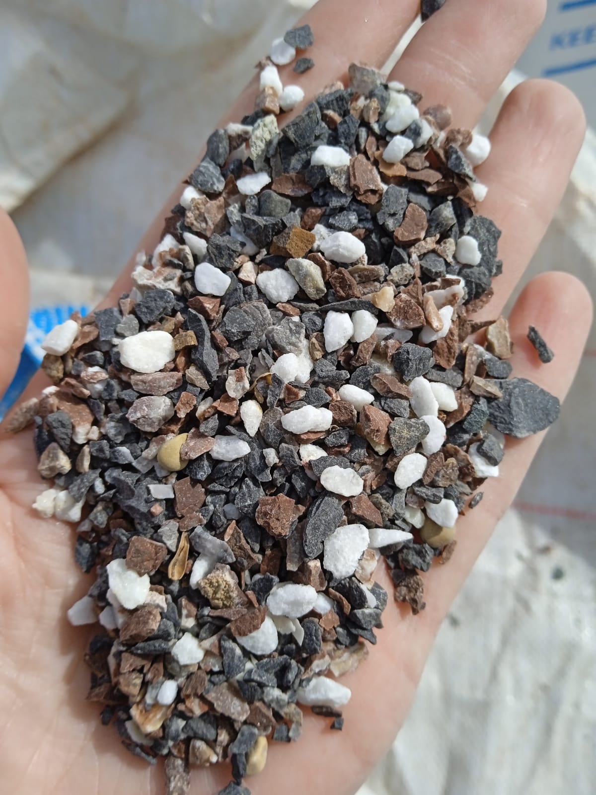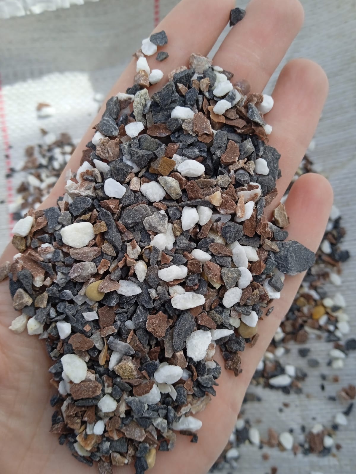 Мраморная крошка (щебень крошка микс : белый-черный-розовый) фр. 5-10 мм.